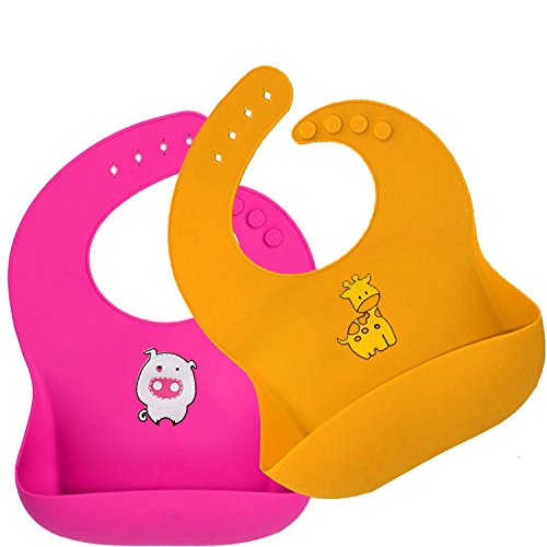 コノビヤ ソフトスタイビブ 食事エプロン 防水よだれかけ シリコンスタイ ベビー食事用 2枚セット立体ポケット 清潔易い 折り畳む可能 6段階 サイズ調整 持ち運び