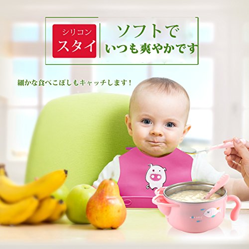 - *立体的なポケット:前面に広がる大きなポケットが細かな食べこぼしもキャッチします。そして、赤ちゃんの体のラインにぴったりフィットします。子様のお腹のラインに沿ったカーブ、腕を動かしやすいようシェイプされた脇など、いつも食べこぼしをキャッチします。
