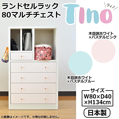 ティノ ランドセルラック 80マルチチェスト 木目調ホワイト×パステルブルー