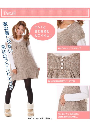 深めのラウンドネック、ふんわりパフスリーブがとってもガーリッシュなニットチュニック♪ゆったり作ってあるからお腹が大きくなっても大丈夫です!レギンスともバランスもGOOD!