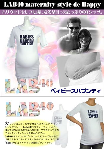 ロサンゼルスのマタニティ・ティシャツブランドLab 40のクールなマタニティTシャツ。大きく入ったプリント「Babies Happen」が茶目っ気たっぷりの可愛いTシャツです。