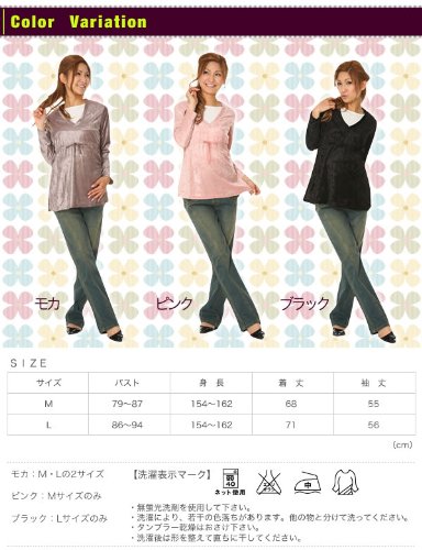 妊娠初期から産後までOK!光沢のあるベロア素材でオトナ可愛く。