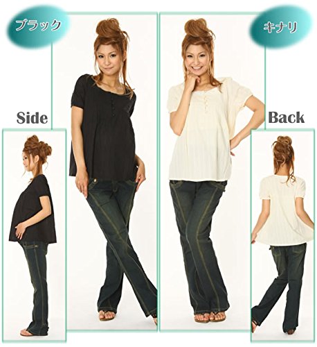 シンプル&キュート!便利な授乳口付スクエア衿ブラウス。