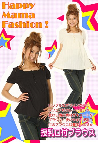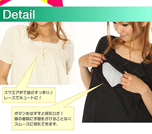 おしゃれを楽しみたいママにおすすめ♪シンプルなデザインだけどスクエア衿のレース使いがキュートなブラウス!ボタンを外すと授乳口が付いているので出先でも便利☆