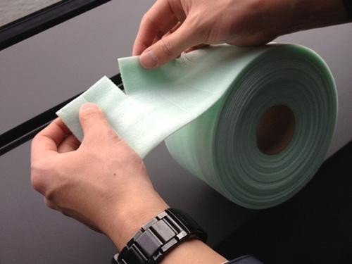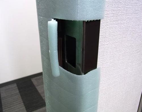 - 緩衝性の高い枠養生材。・他の養生材では養生しづらい、玄関ドア枠や複雑な形状のものでも枠造は養生できます。