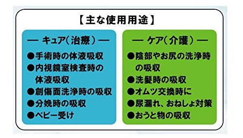 多目的に使用できる薄型で高吸収なディスポシートです。吸収面の逆面は防水フィルムを使用していますので、漏れを防ぎます。高吸収ポリマーで逆戻りを抑え、表面はサラッとしています。 製造国:日本 商品サイズ:約60cm×90cm/枚 仕様:吸収量:約1100ml/枚※生理食塩水での試験結果 セット内容:40枚入り×5袋セット