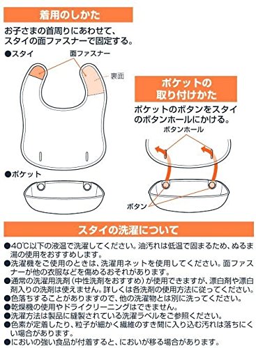仕様 【スタイ】 材質:ポリエステル 表面:NEO-NOCX加工、裏面:撥水加工 首周り寸法:25~30cm 対象年齢:2カ月~ ※ポケットをセットして使用する場合:5カ月~ 【ポケット】 材質:ポリプロピレン 耐熱温度:110度 食洗機使用可