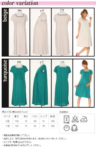 刺繍入りサックワンピース 1261 9号 ターコイズ