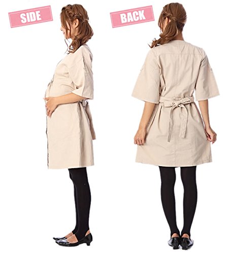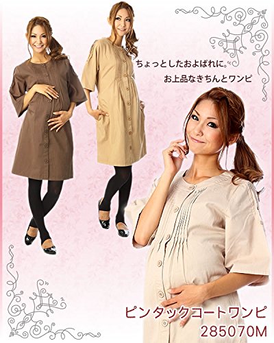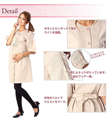 <産前産後対応>ピンタック使いが上品なきちんとワンピ。縦のラインを強調しつつお腹周りはふんわりカバー。フレアー袖もとっても上品。ちょっとかしこまった席にもおすすめですよ♪サイズ/M、L 製造国/中国