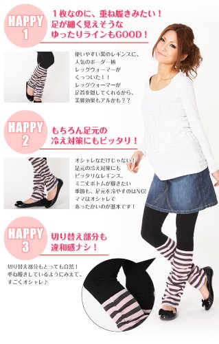 1枚なのに重ね履きしているみたいな、レッグウォーマー付レギンス。流行のボーダー柄もカワイイ♪足首を隠してくれるので、美脚効果もあるかも!?サイズ/M、L 製造国/中国(企画・デザイン:日本)