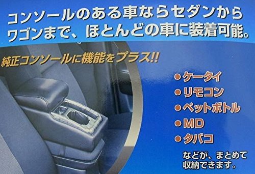 コンソールのある車ならセダンからワゴンまで、ほとんどの車に装着することができます。携帯やリモコン、ペットボトルなど、まとめて収納することができて大変便利です。