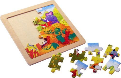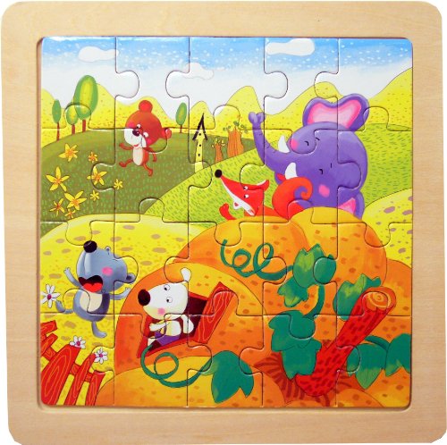 「木製パズル「もりのともだち」」は、森のどうぶつ村を描いたファンタジックな木製パズルです。20ピースのパズルなので、小さなお子様でも楽しく遊べます。