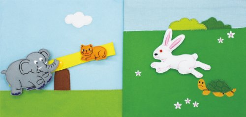 楽しいしかけがいっぱいの布絵本。 象と猫のシーソー、重いのはどっちかな?ウサギとカメ、速いのはどっちかな?などモチーフを使って色々なものを比較できます。 木に登るサルやスライドする水族館のページなど新しい仕掛けも色々あります。 取外し可能なパーツで比較のお勉強!