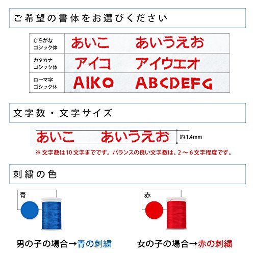 - 刺繍の色は、男の子の場合は「青」。女の子の場合は「赤」。 日本製(愛媛県今治産)