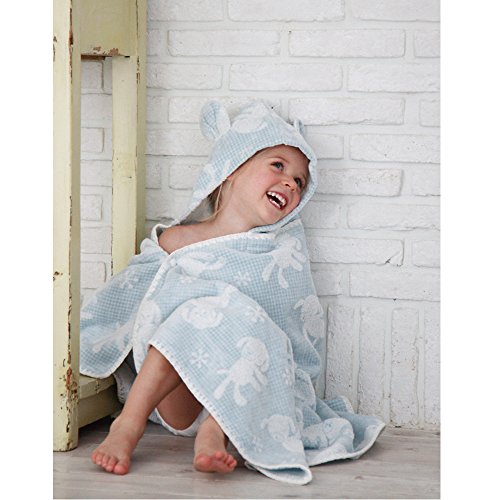 ギンガムマカロン フード付きバスタオル(ブルー) 今治産 (0~3歳用)