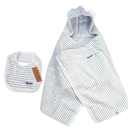 ミルフィーユ ギフトセット1(ブルー) フード付きバスタオル+スタイ1枚 今治産 (0~3歳用) のし・包装・メッセージカード対応