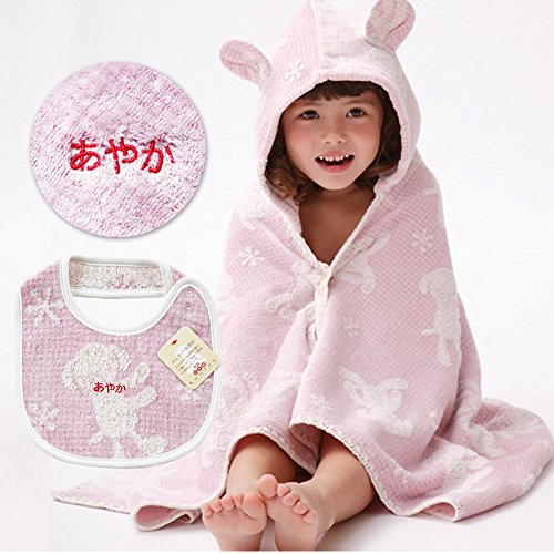 - 名入れ刺繍代込 フード付きバスタオルのサイズ: 58×120cm スタイのサイズ: 50~70cm