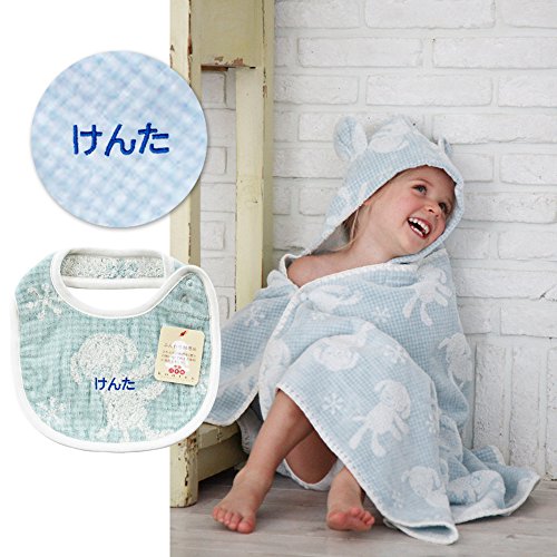 - 刺繍の色は、男の子の場合は「青」。女の子の場合は「赤」。 素材: 綿100% 日本製(愛媛県今治産)