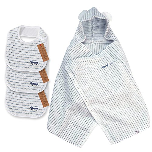 ミルフィーユ ギフトセット2(ブルー) フード付きバスタオル+スタイ3枚 今治産 (0~3歳用) のし・包装・メッセージカード対応