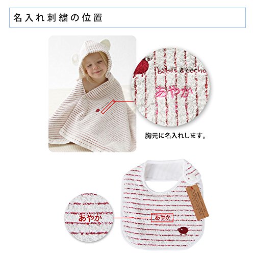 - 刺繍の色は、男の子の場合は「青」。女の子の場合は「赤」。 素材: 綿100% (オーガニックコットン60%) 日本製(愛媛県今治産)