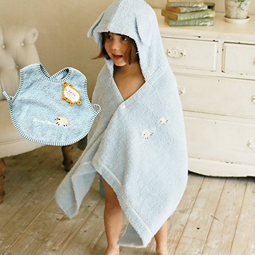 メレンゲ ギフトセット1(ブルー) フード付きバスタオル+スタイ1枚 今治産 (0~3歳用) のし・包装・メッセージカード対応