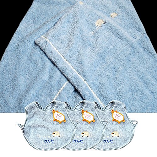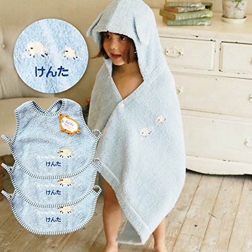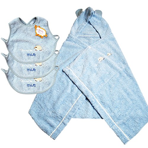 - 名入れ刺繍【無料】 フード付きバスタオルのサイズ: 58×120cm 【数量】1枚 スタイのサイズ: 50~70cm 【数量】3枚