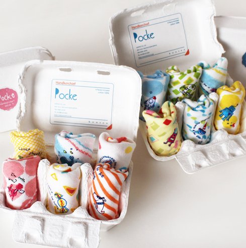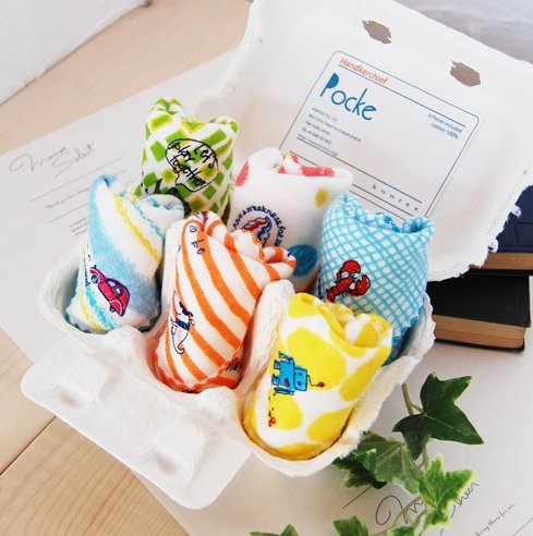 - たまごパックに入った、可愛らしいハンカチ6枚セット(今治産)