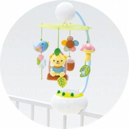 「音センサー」機能付きで、赤ちゃんが泣いたら回りだします。モードを切り替えて、通常のメリーとしてもお使い頂けます。