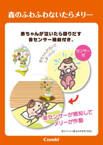 赤ちゃんの泣き声に反応する「音センサー」つきメリーです。通常のメリーとしてもお使いいただけます。ICメロディー6曲・胎内音が選べます。 下飾りは取り外して遊べます。(下飾りは手洗い可)。 床置きはもちろん、ベビーベットにも取付けられます。