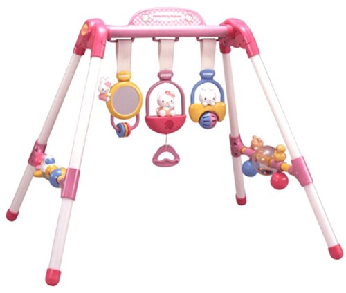 「メリーさんのひつじ」のやさしいICメロディ付かわいいキティちゃんのジム。下飾りは取り外してガラガラとしても遊べる。手、耳、目、五感の全てで感じとれるおもちゃ。