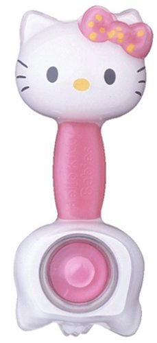 ハローキティベビーズのベビートイ。カラーボールが不思議にみえるミラー付き。揺らすとシャカシャカ音がする。なめてもはがれないよう、内側塗装。
