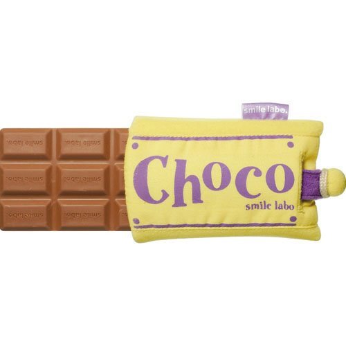 チョコ部分は歯がためになっており、なめたりかんだりできます。布カバー&ベルト付きなので、ベビーカーやベビーキャリアにつけられ、おでかけ時の持ち運びも便利です。
