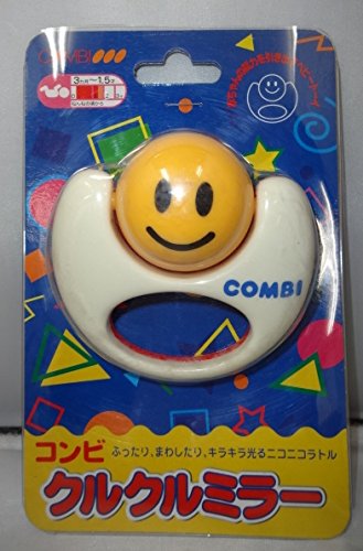 くるくる顔が回るガラガラ。赤ちゃんの認識しやすい顔ときらきら光るミラーがついたおもちゃ。顔の部分は指でくるくるまわせて、五感の発達を助ける遊びができる。