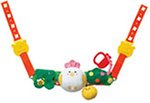 便利なひざかけクリップがついたおでかけトイ。ベビーカーからひざかけが落ちるのを防ぐクリップ付き。ひざ掛けの上におもちゃをおいて遊べる。赤ちゃんのお気に入りのおもちゃがもりだくさん。おもちゃとクリップは別々でも使用できる。