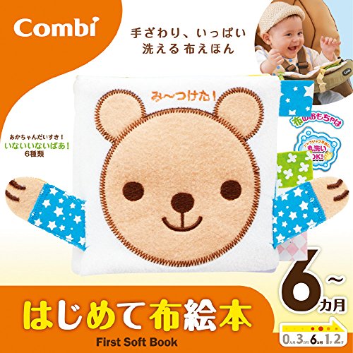 やわらかい素材でいないいないばあ遊びができる布絵本。おでかけ用ベルト付。