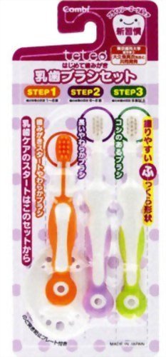 【日本製】コンビ Combi テテオ teteo はじめて歯みがき 乳歯ブラシセット (歯の本数の目安:1本~) 握りやすいふっくら形状グリップ