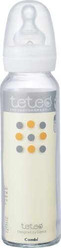 teteo 哺乳びん 耐熱ガラス製i200ml 母乳・ミルク用Mサイズ乳首付 ホワイト