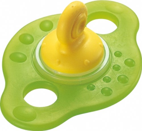 離乳食のスタートのために、「吸う」から「なめる・かむ」へのトレーニング。●くちびるや歯ぐきを刺激する凹凸。●しっかり持てる穴あきグリップ。●振ると音がするカラーボール入り。●赤ちゃんの口に入る周囲部分はやわらかい素材を採用。●乳首のような形状で、なめたり噛んだりできます。●丸い突起でくちびるを刺激します。●自然にくちびるが閉じる断面形状。