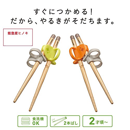 コンビ ベビー用はし はじめておはし木箸 左手用 オレンジ 2歳頃から対象