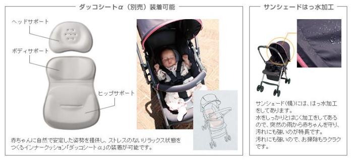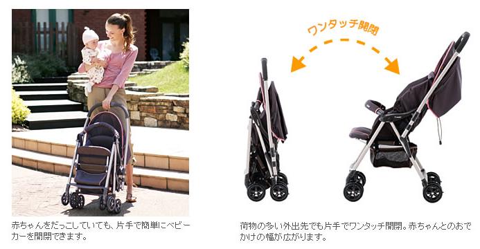 ![]() | [安全性]オープンガード フロントガードがワンタッチで開き、赤ちゃんの足が引っかからずに乗せ降ろしがスムーズ。コンビが開発した世界初の機能。 |