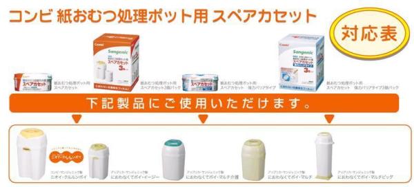 その他の特長:スペアカセットは以下の製品にも使用可能 コンビ・サンジェニック製 「ニオイ・クルルンポイ」 アップリカ・サンジェニック製 「におわなくてポイ・イージー」 「におわなくてポイ・マルチ介護」 「におわなくてポイ・マルチ」 「におわなくてポイ・マルチビッグ 」