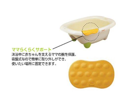 - 沐浴中の赤ちゃんの体をしっかり安定させ、ママの腕にかかる負担を軽減するサポートバス。