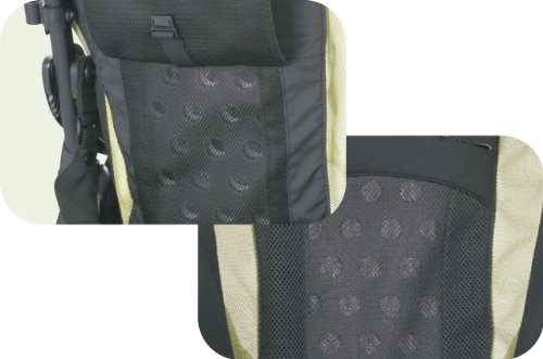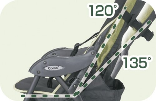 ![]() | 前ズレ防止 お尻の前ズレ防止と落下防止のために、ガードが付いていないベビーカーには座面に角度を設けている。コンビの安全に対する配慮。 |