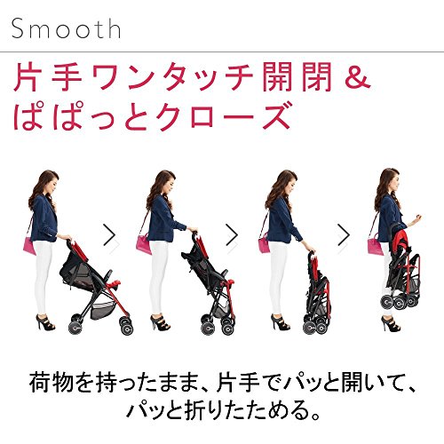 ●片手ワンタッチ開閉&ぱぱっとクローズ 荷物を持っていても、軽々と片手でワンタッチ開閉できます。さらに、たたんだ時に背もたれが自動的に起き上がる「ぱぱっとクローズ」搭載で、すぐにスッキリ収納状態に。
