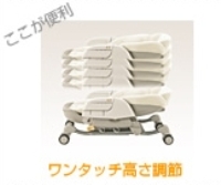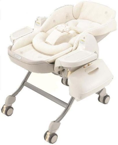 ![]() | そっと一押しすると、電動で約15分間ベッドが静かに揺れ、赤ちゃんを快適な眠りに誘う。ママのだっこ感覚で入眠率70%(自社調べ)。スウィングの振幅は4段階に調節可能(最大50mm、最小25mm)。 ※電動スウィング機能は荷重制限9kg迄 |
