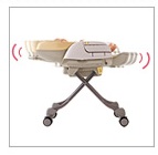 ![]() | そっと一押しすると電動でベッドが静かに15分間揺れ、赤ちゃんを快適な眠りに誘う。だっこ感覚で入眠率70%(自社調べ)。電動なのにモーターを使わず磁石の力で動くサイレンとスウィングで音も静か。 |