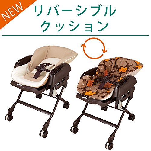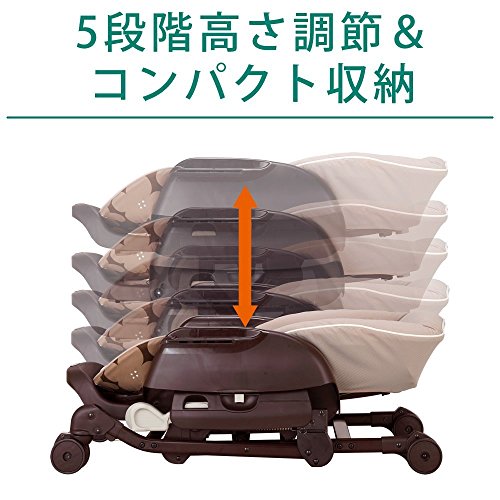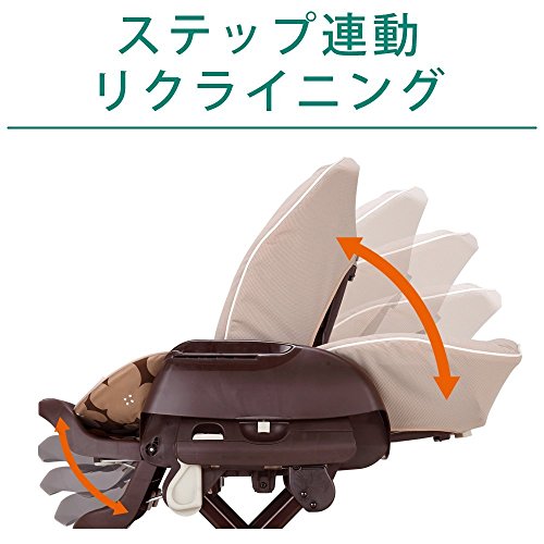 ●ステップ連動リクライニング 5段階の背もたれリクライニングとステップが連動するコンビ独自の機能。昼寝、授乳、食事など赤ちゃんの快適な姿勢を保ちます。