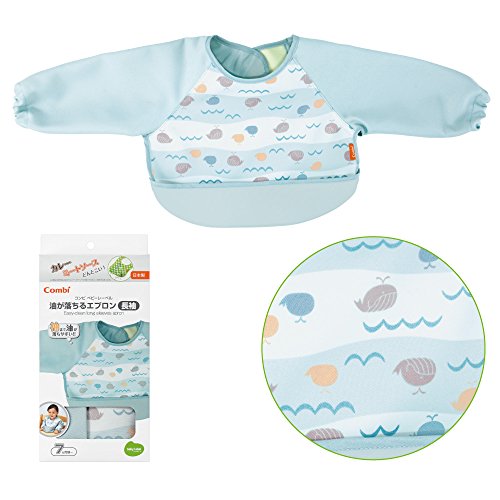 コンビ Combi ベビーレーベル 油が落ちるエプロン 長袖 くじら(BL)