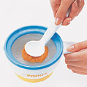 ![]() | スリスリ計量スプーン フラットな底面と、ボウルに合わせた持ち手カーブで、すりつぶしやすくなっている。 |