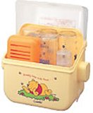 電子レンジでカンタン消毒 水を入れたケースをまるごと電子レンジに入れて、たったの5分でらくらくスチーム消毒。 4本の哺乳びんを同時にスチーム消毒することができます。 哺乳びんが4本入る衛生ケース 240mlの哺乳びんが4本(通常口径びんの場合)と乳首が4つ入ります。消毒後はそのまま保管でき、衛生的です 対応できる電子レンジおよび庫内寸法 一般家庭用電子レンジ 出力500~700W 幅26.5cm以上×奥行26.5cm以上×高さ13.0cm以上 レンジ皿から天面までの寸法 イラストはレンジ皿を備えている電子レンジの場合 フラットタイプの電子レンジにも使用できます